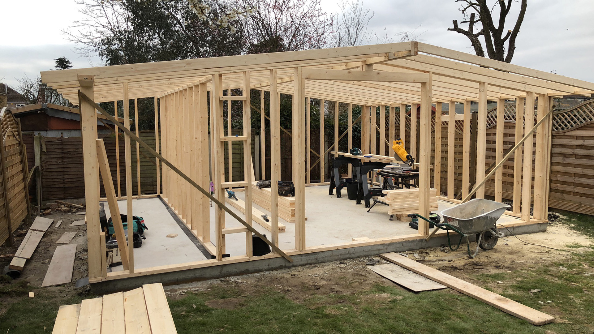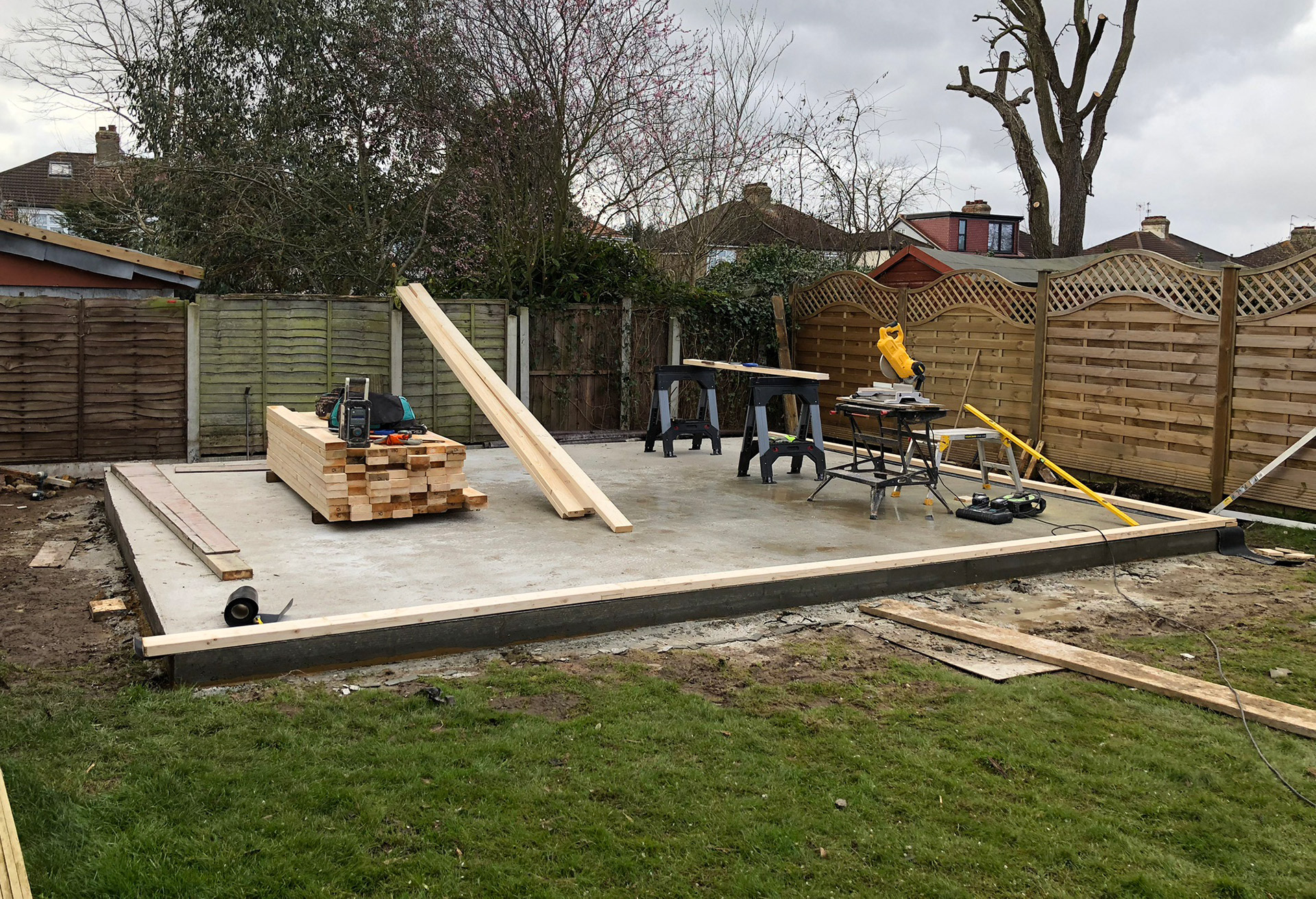 Wooden decking can be constructed around the building to complete the look.